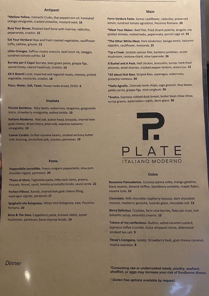Plate is a trendy and classy Italian restaurant located in Kansas City, MO. Boasting a wide range of options including pescatarian and vegan dishes, Plate offers a unique dining experience for all. Customers praise the well-curated menu and friendly staff, with standout dishes like truffle butter bread, truffle gnocchi, and s'mores dessert receiving rave reviews. The restaurant's ambiance is described as intimate and welcoming, making it a great spot for brunch or dinner. With amenities like happy hour specials, free Wi-Fi, and heated outdoor seating, Plate caters to a diverse range of preferences. Whether you're looking for a casual meal or a special night out, Plate is a must-visit destination for delicious Italian cuisine.